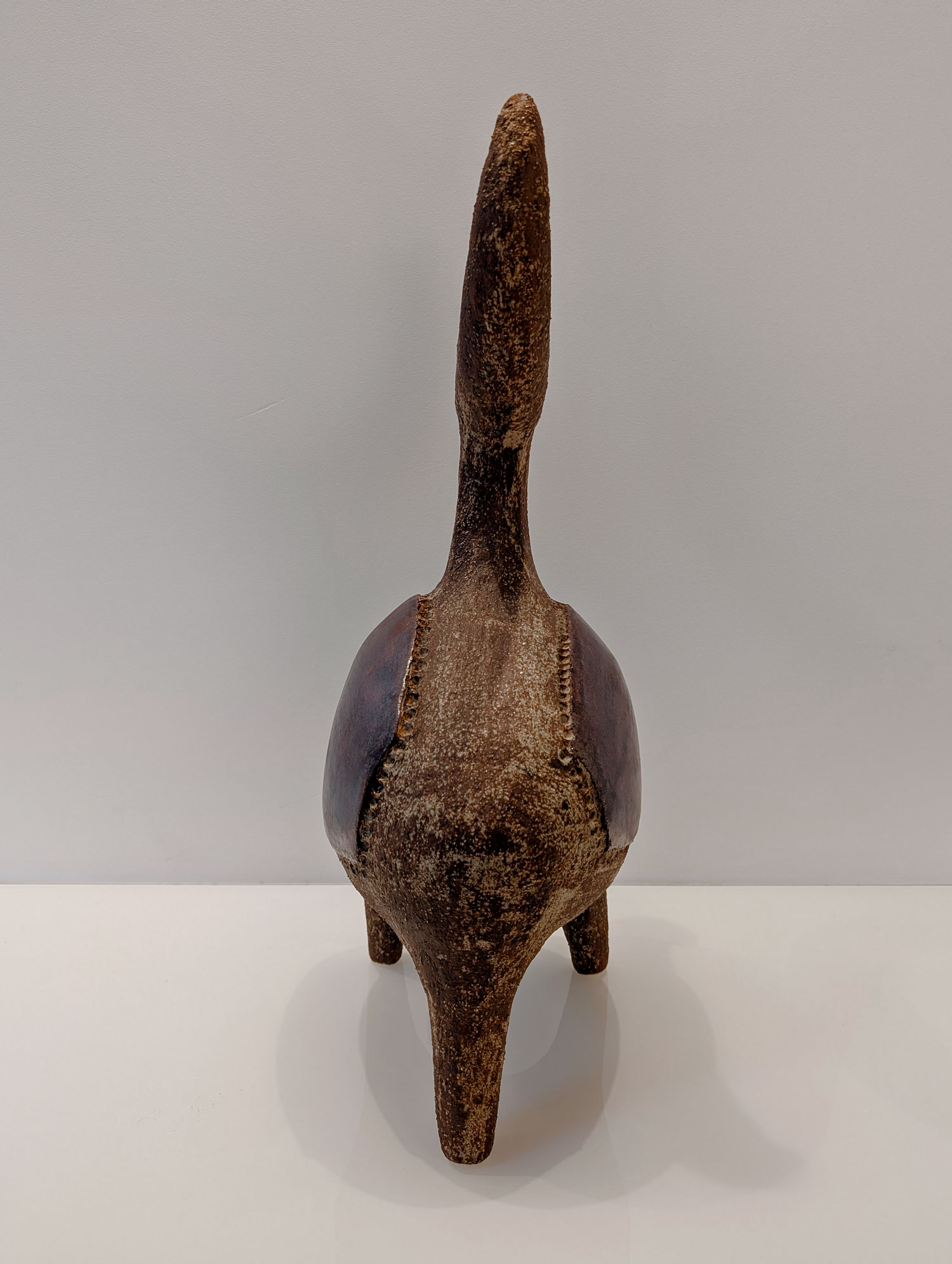 Sculpture de taureau en grès, entre figuration et abstraction. L’émaillage est réalisé avec de l’alquifoux, un émail traditionnel du Sud méditerranéen.